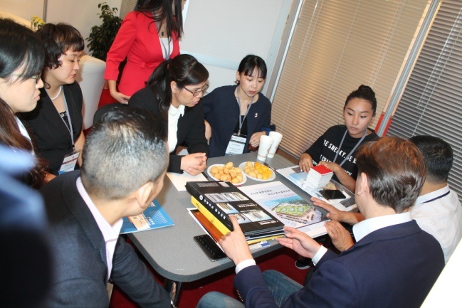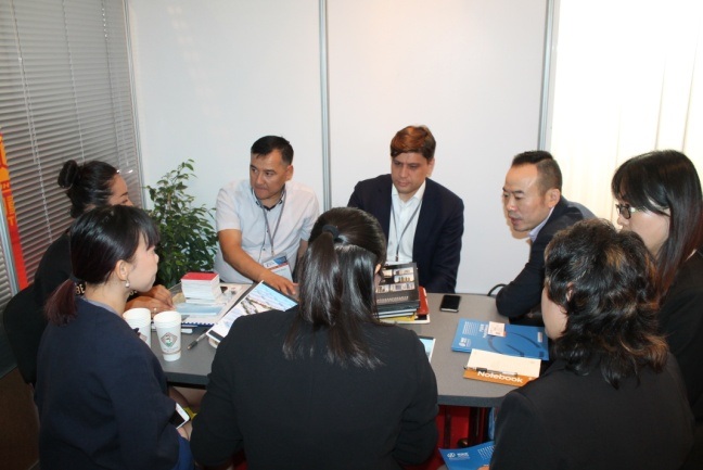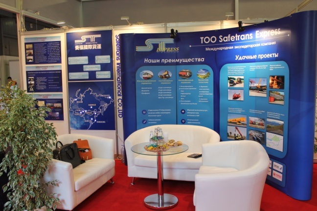 其中,展示区共邀请上海汇展国际物流有限公司、北京赛福国际货运代理有限公司、在哈中资企业中国重型汽车集团有限公司、哈萨克当地企业жандану НТ(工具类企业)、 Smicasea(石材类企业)共五家企业参展。分别为中国企业提供出口货运咨询与服务。两家当地企业是已经跟中国企业有合作或合资的企业,在相关产品的市场情况和市场定位方面有着大量的信息和经验可以与中国参展企业沟通。